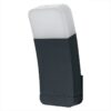 Candeeiro de parede externa com um formato de curva, feita de alumínio de alta qualidade na cor cinza escuro, com um difusor em policarbonato.