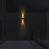 Alipque de parede LED Vio com iluminação superior e inferior. Candeeiro de parede concebido para fornecer luz ambiente suave em paredes de jardim, terraços e varandas. Seu design permite que a abertura de cada feixe de luz seja ajustada de forma independente. Possui um painel solar na frente que permite que o candeeiro de parede seja carregado com luz solar e utilizado sem consumo de energia. Temperatura de cor branca quente (3000K) ou branco neutro (4000k) e sensor crepuscular.