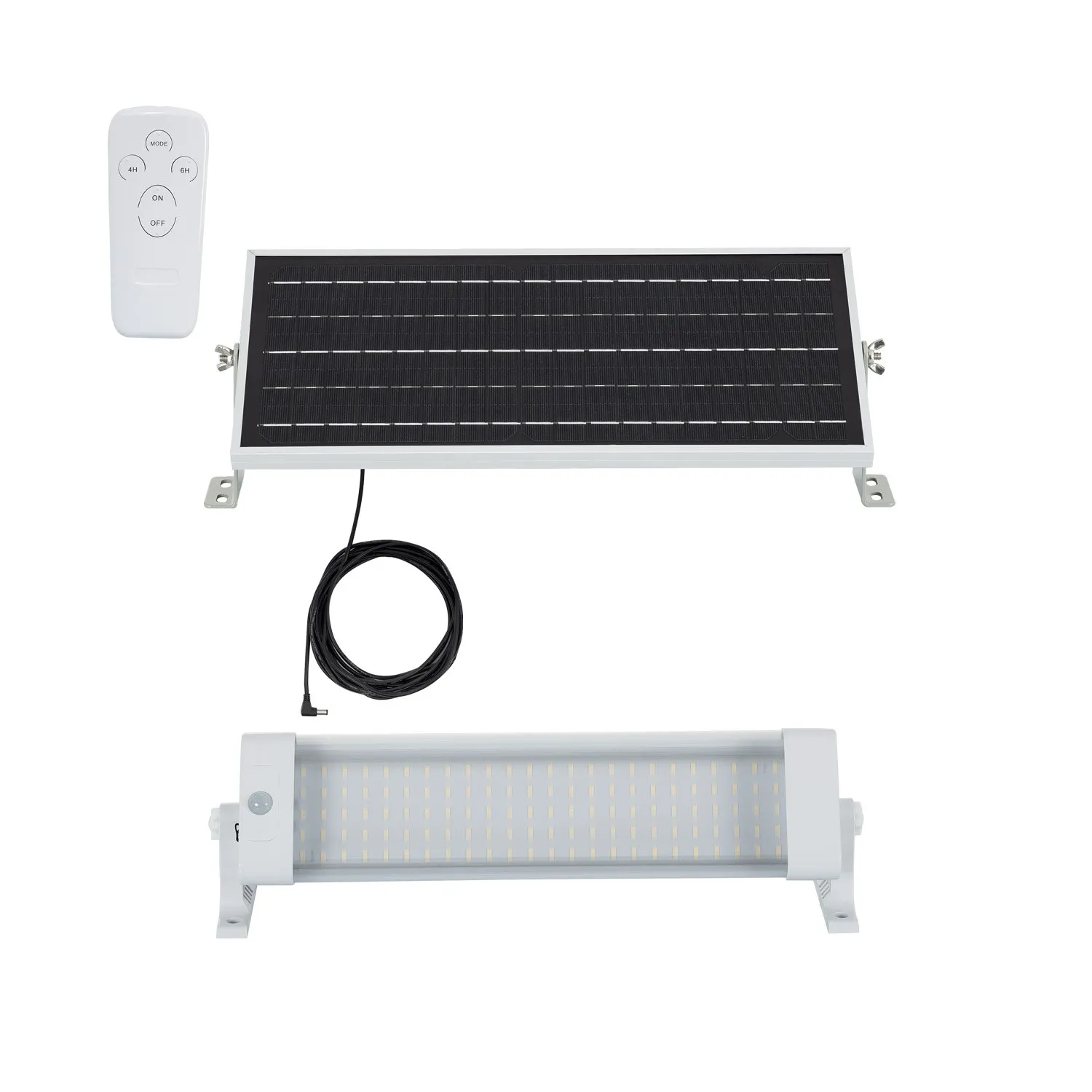 A Armadura Estanque LED 44.5 cm 10W Solar IP65 possui LEDs SMD 2835 de alta eficiência que funcionam através de uma Bateria LiFePO4 6.4V 12AH que tem um tempo de descarga entre 20h e 24h. Esta Bateria é carregada com um Painel Solar Monocristalino de 9V e 15W que está incorporado. O cabo do painel solar para a tela tem 4.9 metros de comprimento para que você possa colocá-lo onde quiser.