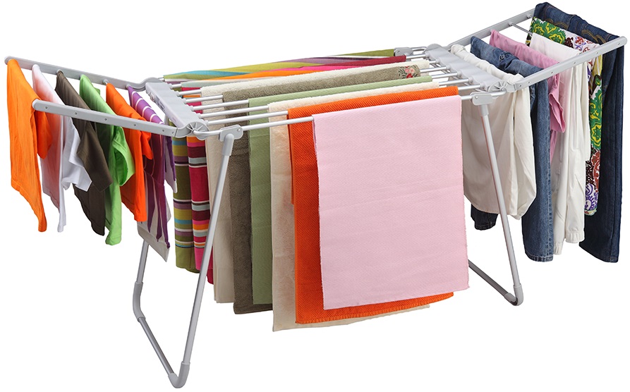 Um estendal dobrável que pode ser facilmente transportado para qualquer lugar graças ao seu design leve e dobrável . Também pode ser utilizado como estendal normal sem estar ligado à rede elétrica.