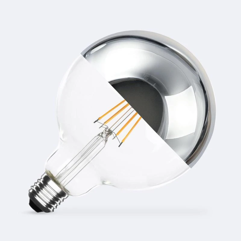 Com a Lâmpada Filamento LED E27 8W 800 lm G125 Chrome Reflect, poderá criar espaços acolhedores e personalizados, sem comprometer a eficiência energética nem o seu estilo retro único.