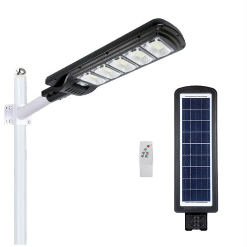 Luminária LED solar com sensor dia-noite e movimento. Tem fator de proteção IP65.