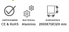 Este perfil é fornecido em barras de 2m com o difusor e topos incluídos
