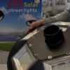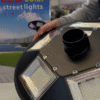 Luminária LED Solar 200W com sensor de movimento, 6500K. Possui 12000 Lumens e IP65.