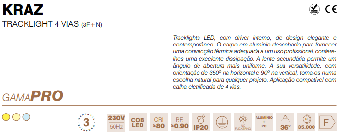 TRACKLIGHTS COB LED 4 VIAS (3F+N) KRAZ 25W|PRETO