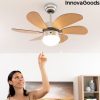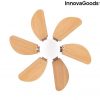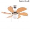 Uma ventoinha de teto com luz, muito prática devido à sua dupla função de utilização simultânea ou independente como lâmpada ou ventoinha. Ideal para iluminar e ventilar qualquer divisão ou espaço, combatendo eficazmente o calor sufocante. Além disso, valoriza a decoração de qualquer casa, graças ao seu design especial que elegantemente combina metal e madeira (MDF). Com 2 correntes suspensas para controlar as suas funções, nomeadamente uma para a luz e outra para a ventoinha (ON/OFF e mudança de velocidade).